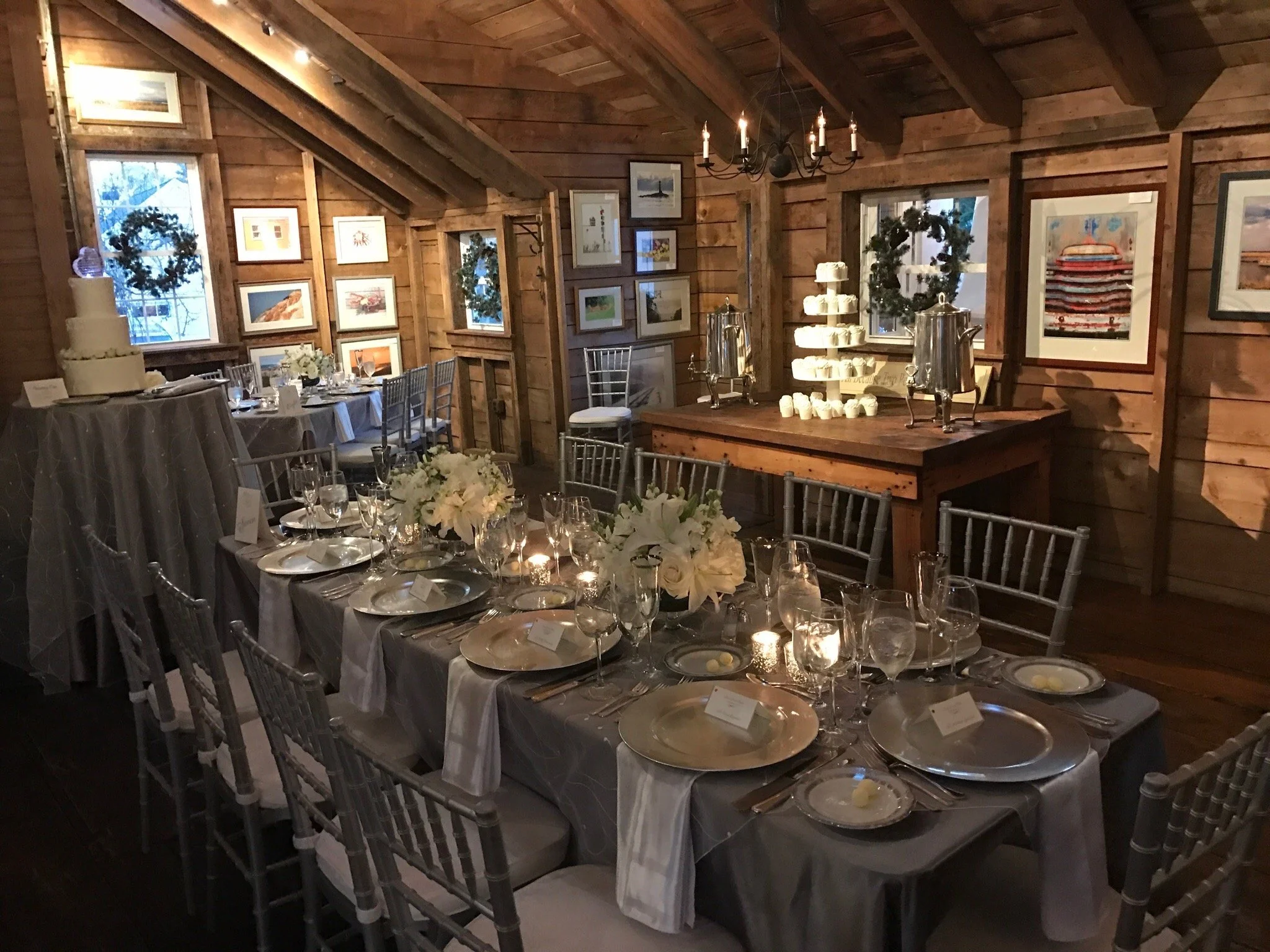 Nestled in the olde quaint village of Dennis, Massachusetts, The Dennis Inn’s sister venue, The Borsari Gallery, offers a romantic and unique backdrop to your celebration. We invite you and your guests to step inside the rustic interior of a quintessential New England barn adorned with wood-planked walls and artwork depicting the beautiful scenes of the New England coastline.
